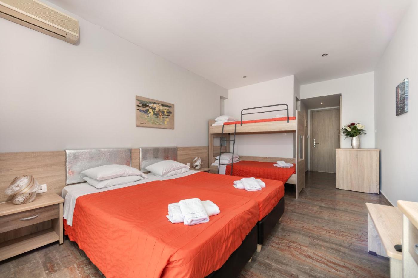 Standard Τετράκλινο Δωμάτιο. This quadruple room provides a pool with a view. This air-conditioned quadruple room includes a flat-screen TV with satellite channels, a private bathroom as well as a balcony with sea views. The unit offers 3 beds. ;