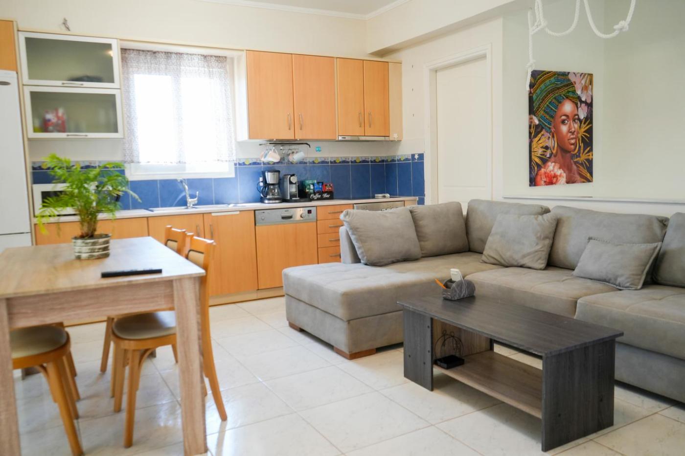Διαμέρισμα 2 Υπνοδωματίων. Guests can make meals in the kitchen that is fitted with a refrigerator, a dishwasher, kitchenware and an oven. The spacious air-conditioned apartment offers a flat-screen TV with streaming services, a washing machine, a private entrance, soundproof walls as well as sea views. The unit offers 3 beds.